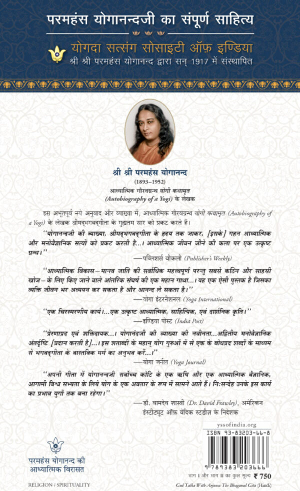 The Bhagavad Gita has been revered by truth-seekers of both the East and West, yet its deepest meaning, cloaked in allegory, has remained obscure. In God Talks With Arjuna, Paramahansa Yogananda offers a translation and commentary of unparalleled scope and vision.